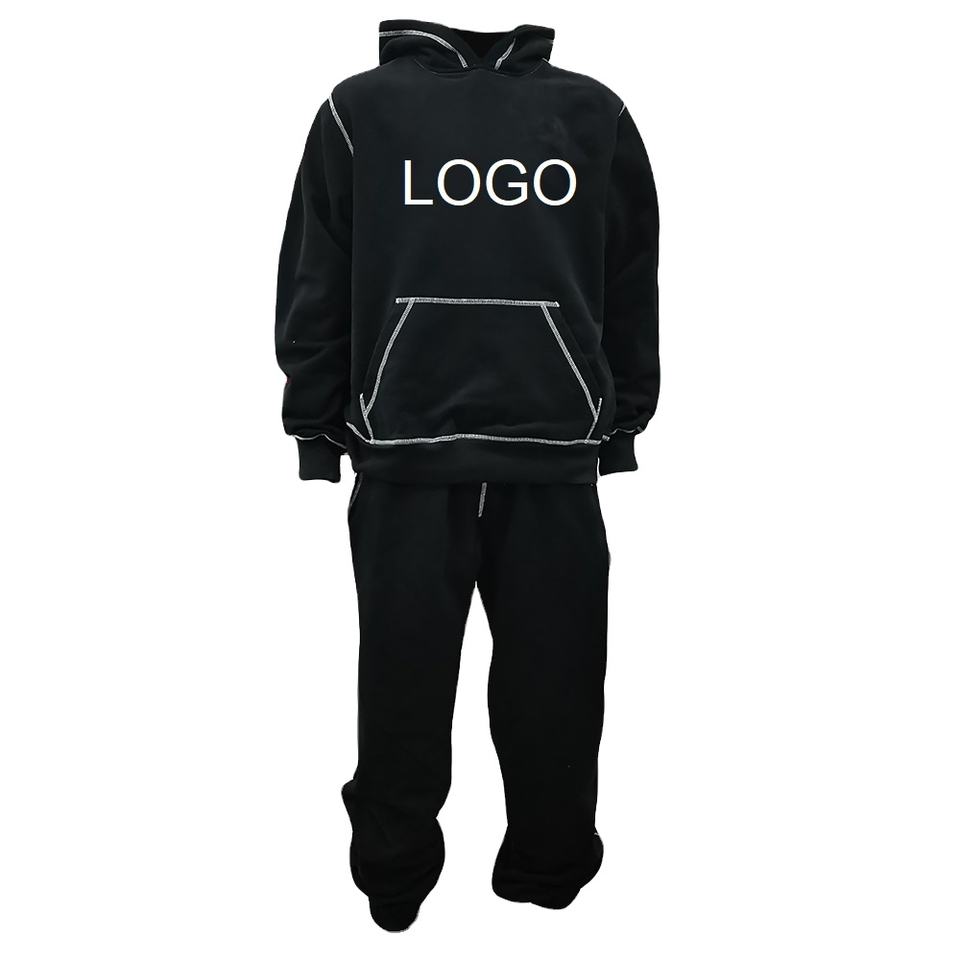 Ensemble de survêtements et sweats à capuche surdimensionnés décontractés pour hommes avec logo imprimé personnalisé survêtement uni au point contrasté 2025