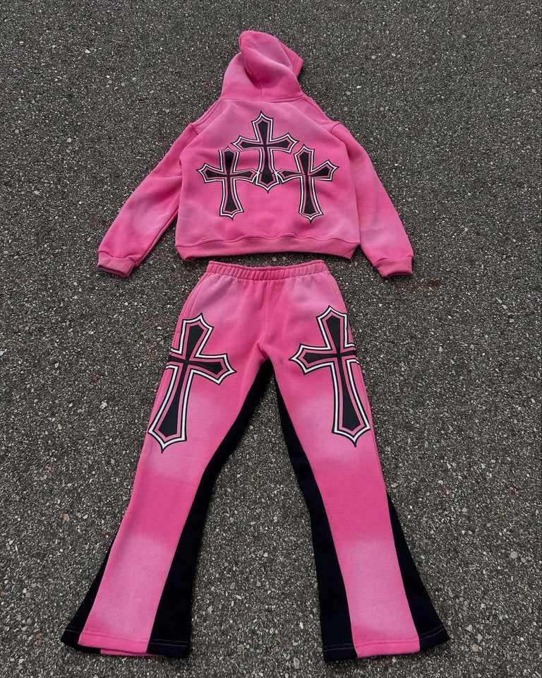 Survêtements d'hiver pour hommes avec logo personnalisé ensembles empilés taille XL avec pantalons évasés deux pièces et sweats à capuche survêtements survêtement