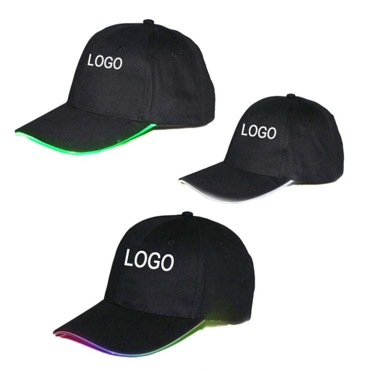 Casquette lumineuse LED à logo personnalisé pour promotion, cadeaux fantaisie, mode, baseball, qui brille dans le noir