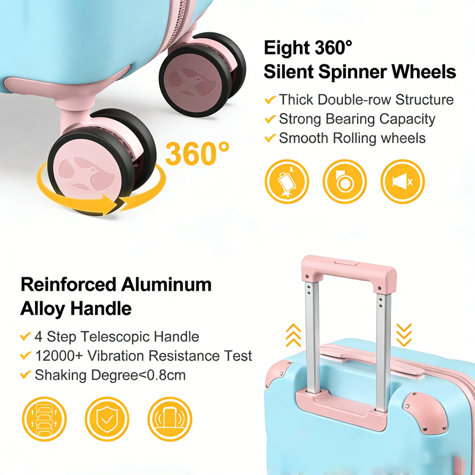Valise de cabine personnalisée 18 pouces, motif dessin animé, légère, avec roulettes pivotantes, en ABS durable, pour filles
