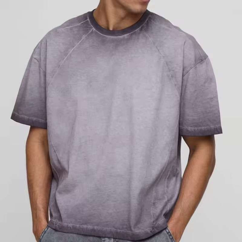 T-shirt en molleton français surdimensionné à manches courtes, col épais, impression DTG, design personnalisé, 100% coton, service OEM pour hommes