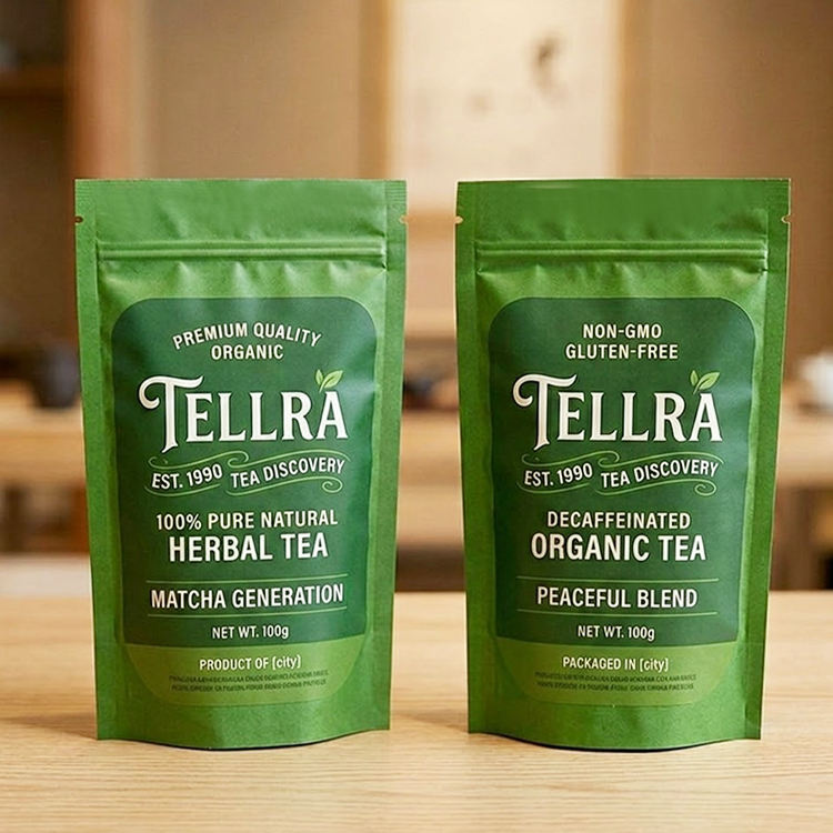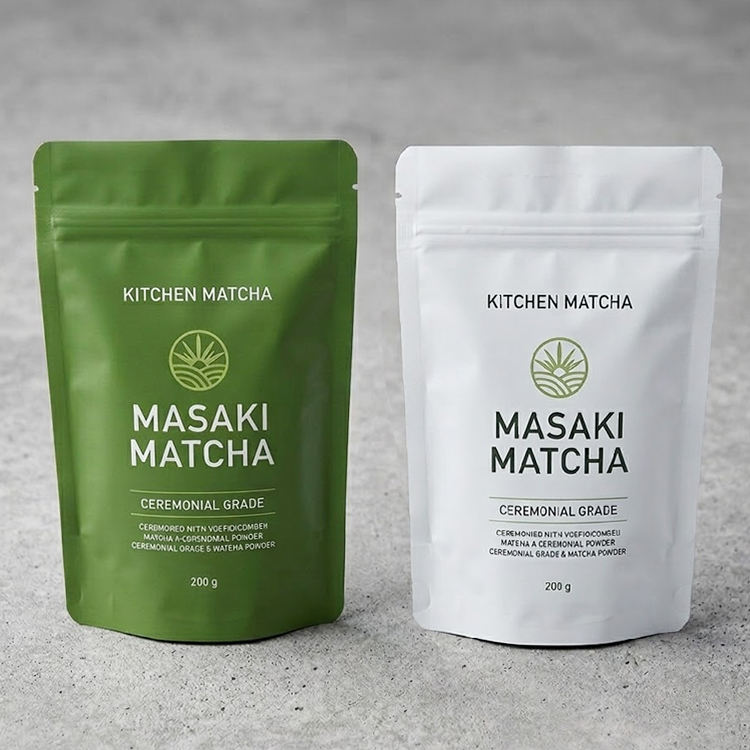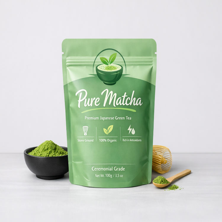 Sac d'emballage alimentaire personnalisé avec fermeture éclair, vert café, thé matcha, poudre de fruits secs, sac debout avec fermeture éclair pour collation, thé