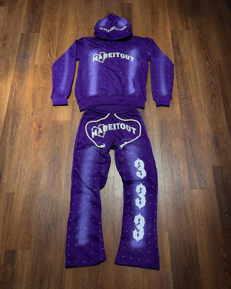 Ensembles empilés de logo à impression personnalisée Survêtements pour hommes Ensembles de pantalons évasés deux pièces Sweatshirts à capuche Survêtements pour hommes