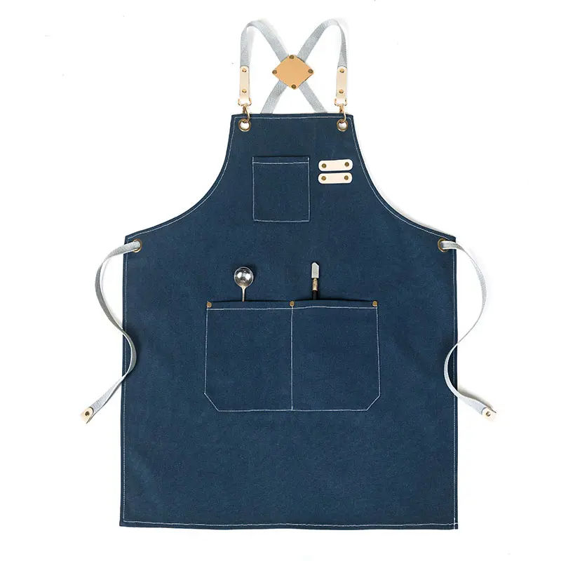 Tablier de vêtements de travail en toile de coton épaissie avec logo imprimable personnalisé Anti-tache d'huile pour le ménage cuisine nettoyage fête utilisation