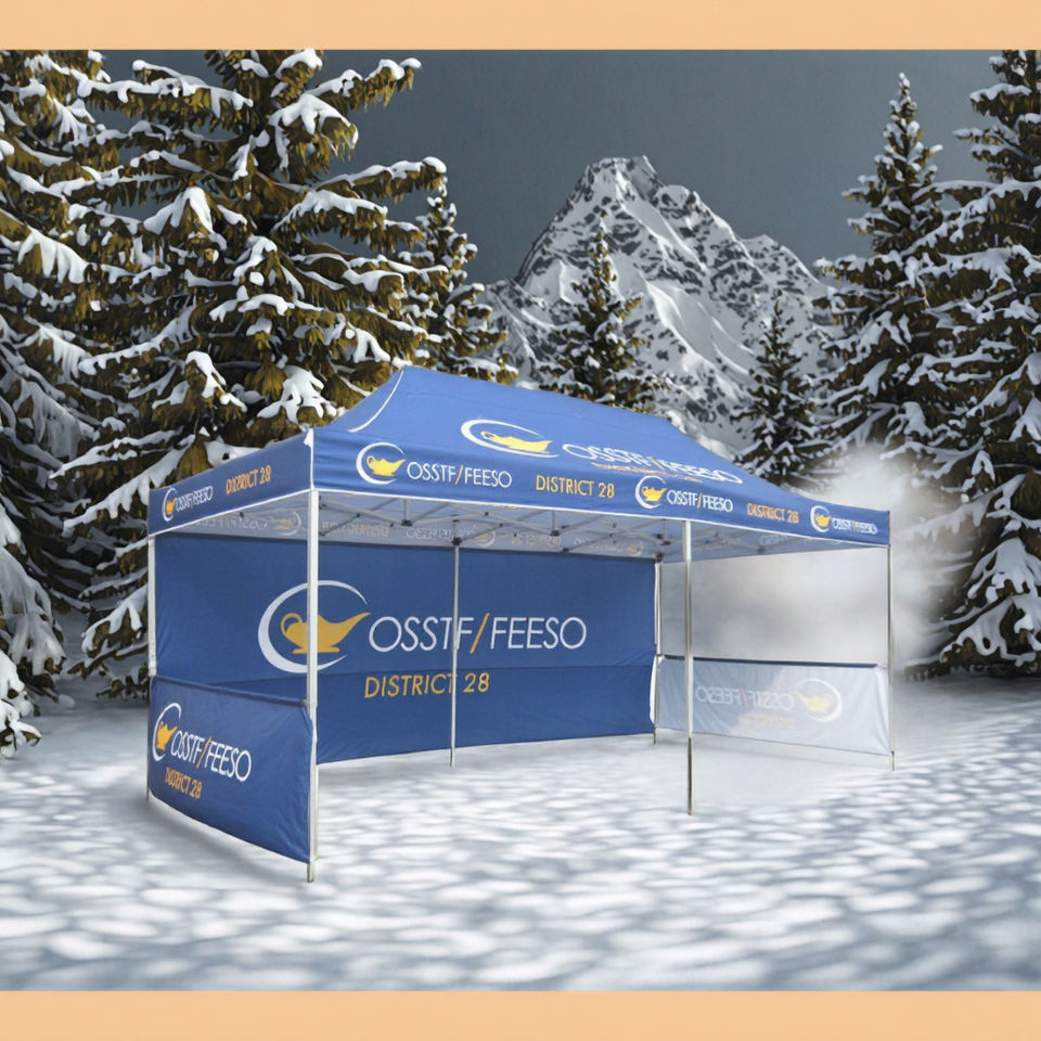 Tente de marché industrielle et commerciale à structure pop-up 10x10 avec impression personnalisée pour événements extérieurs, marché européen, salons professionnels, modèle simple