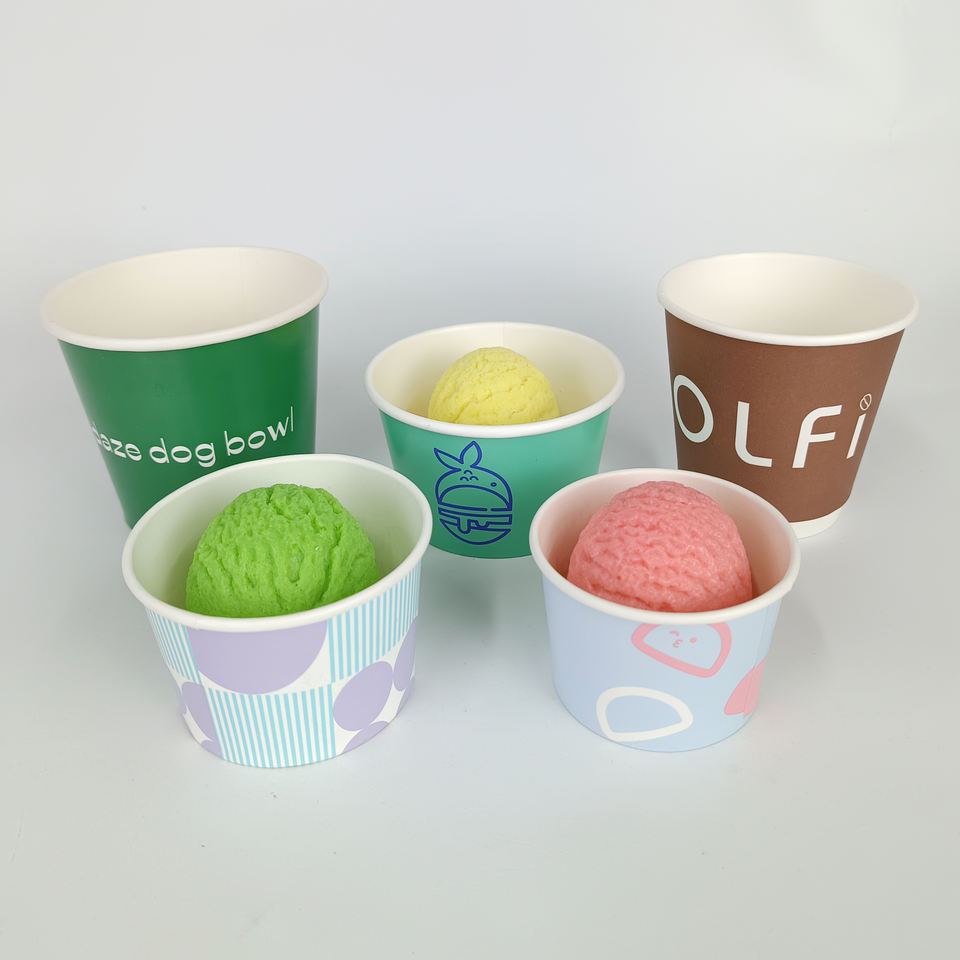 Gobelets en papier écologiques imprimés personnalisés de 3oz/4oz/6oz de qualité alimentaire enduits de PE conception étanche pour crème glacée