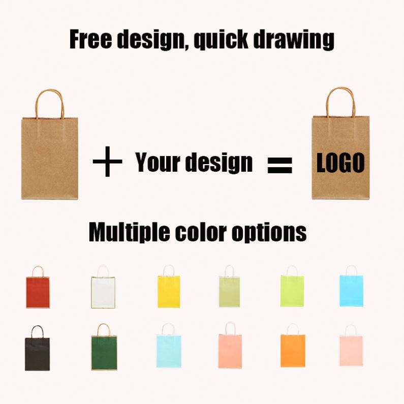 Sacs en papier kraft biodégradables imprimés sur mesure, sacs shopping jetables bruns avec poignée pour vêtements et cadeaux