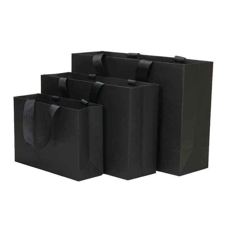 Sacs à provisions en papier de luxe imprimés sur mesure en noir avec poignée en ruban fourre-tout d'emballage en carton avec logo personnalisé sacs en papier promotionnels