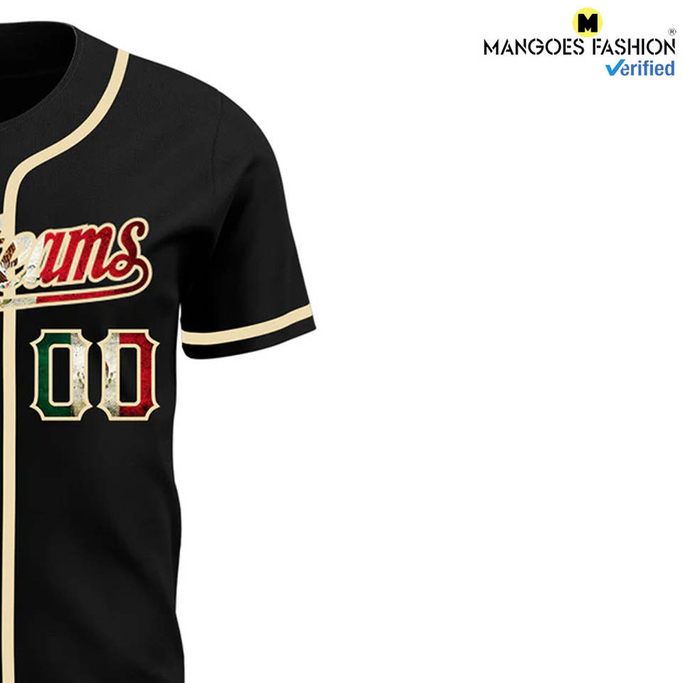 Custom Printed Black Vintage Mexican Flag-City Cr-eam Authentic Baseball Jersey Sportswear Athletic Cut Breathable Quick Dry