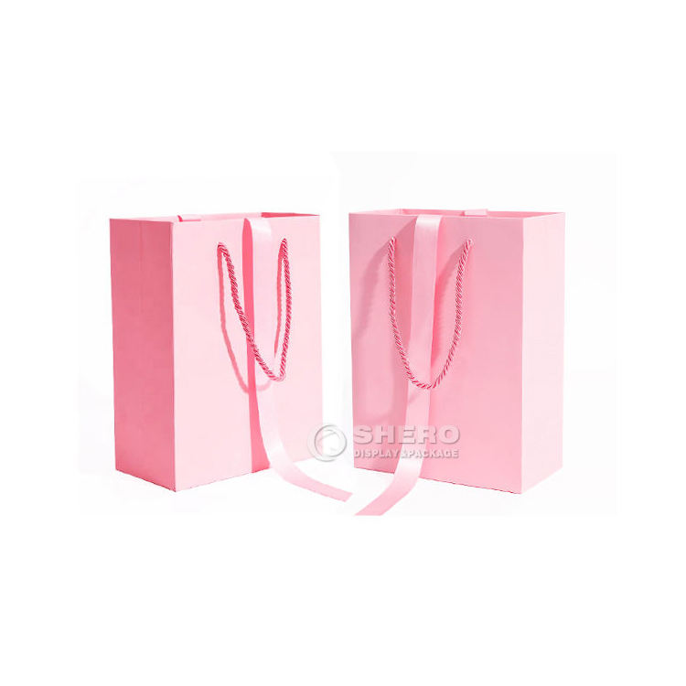 Sacs en papier cartonnés personnalisés pour boutiques, vente en gros, petits sacs cadeaux pour bijoux avec poignées à trois cordons