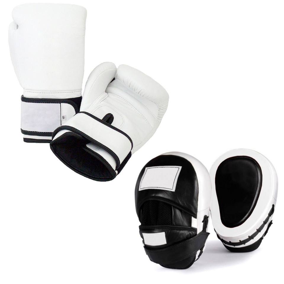 Gants de boxe imprimés personnalisés à vendre, nouveaux gants et coussinets de boxe en cuir de vache véritable UK