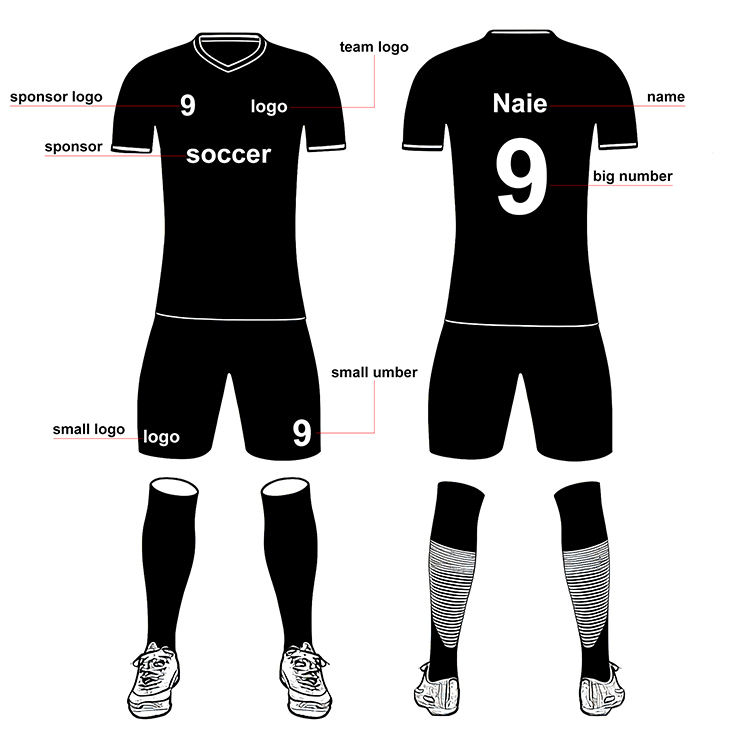 Uniformes de football unisexes respirants et à séchage rapide, imprimés sur mesure, pour l'entraînement sportif, vente en gros, 100% polyester avec logo personnalisé