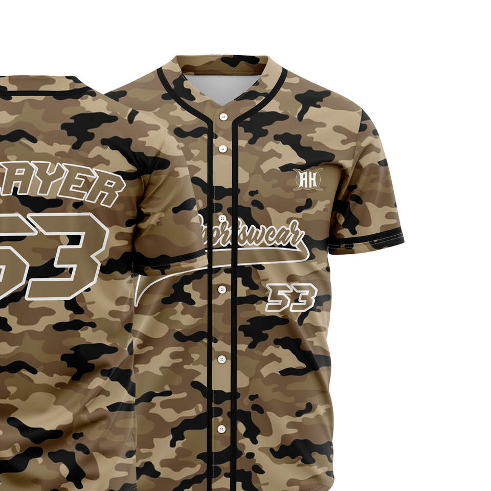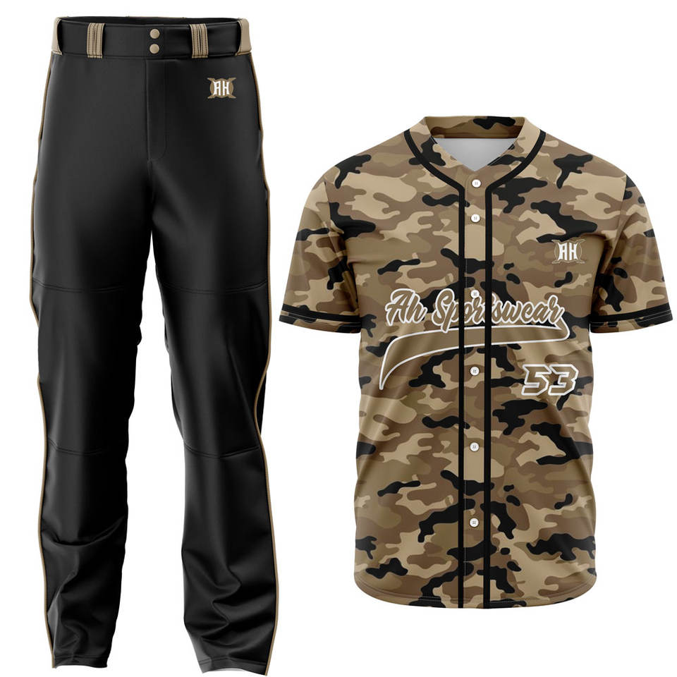 Ensemble de vêtements de sport de baseball à motif de camouflage imprimé personnalisé Uniformes de chemise à boutons respirants pour pantalons Processus de sublimation de qualité incroyable