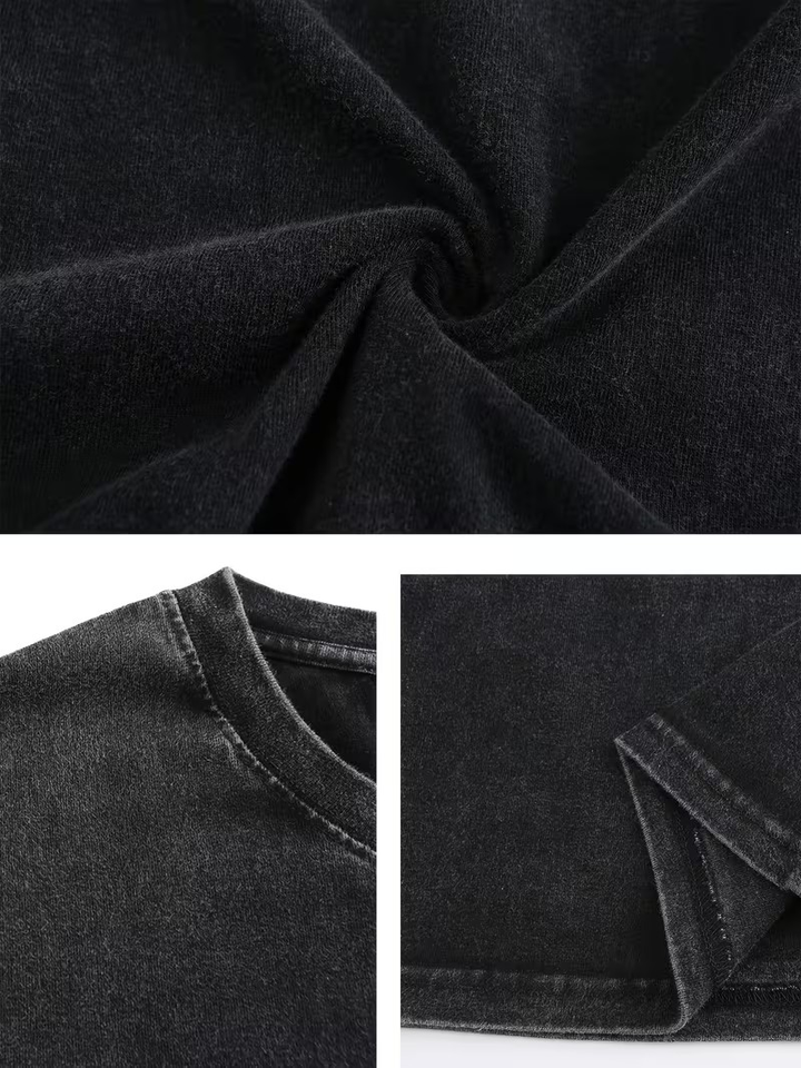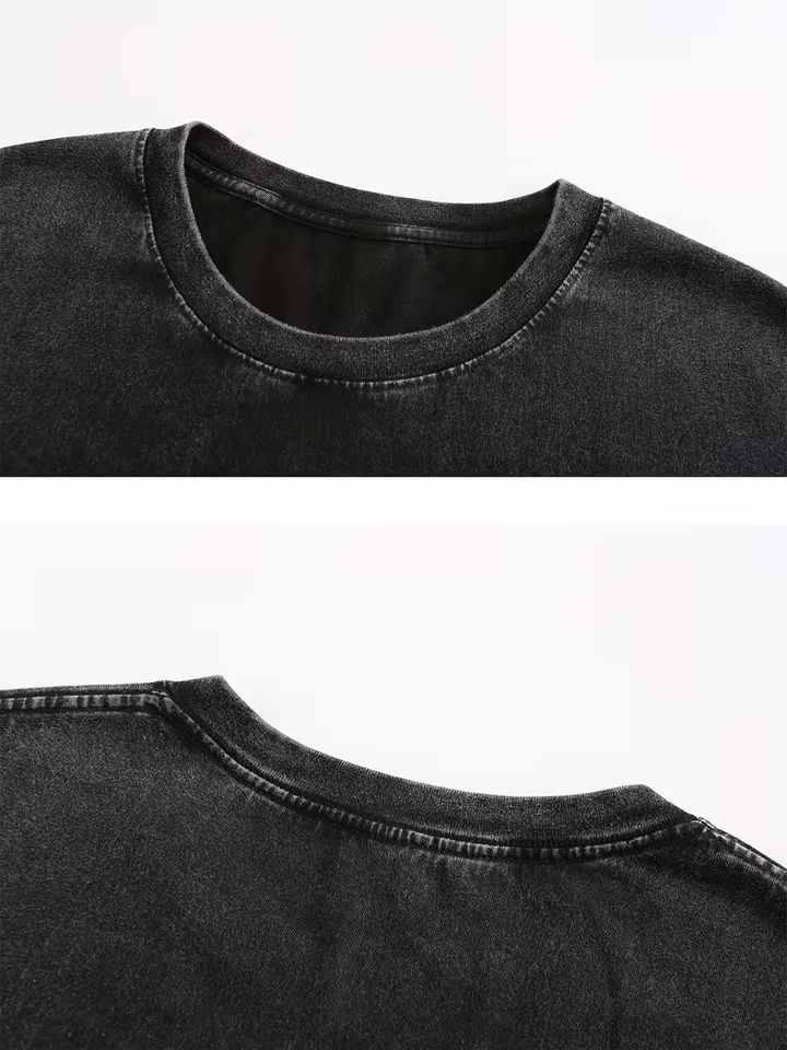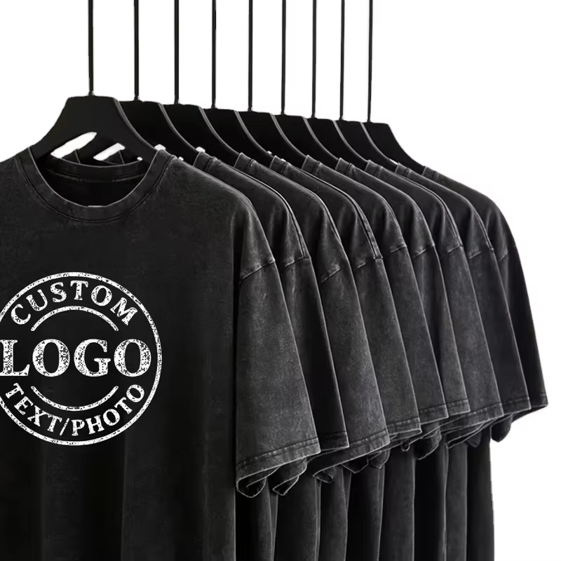 Custom Printed Chest Logo Personalized Front Silk Screen Printed Turtleneck Men's Washed Aged 100% Cotton Formal Short T-Shirt