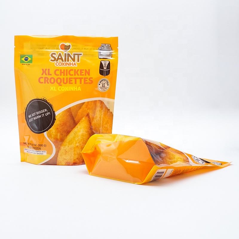 Pochette debout pour croquette de poulet imprimée personnalisée avec fermeture à glissière sac d'emballage en mylar pour aliments congelés à basse température de qualité alimentaire