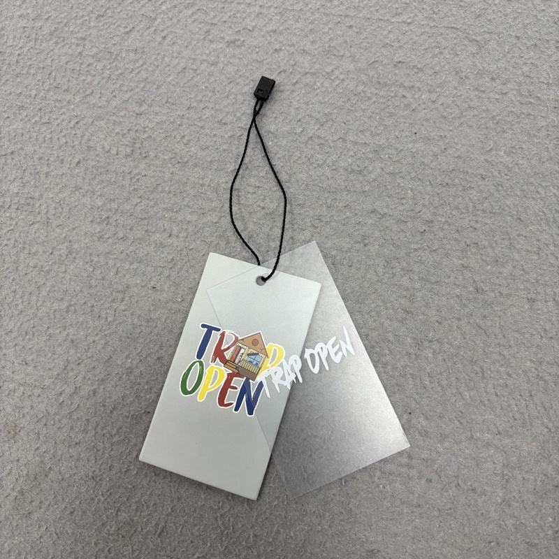 Sac en plastique PVC transparent imprimé personnalisé étiquette volante pour vêtement étiquettes étiquettes de prix en papier pivotant épingle à cordon conception logo