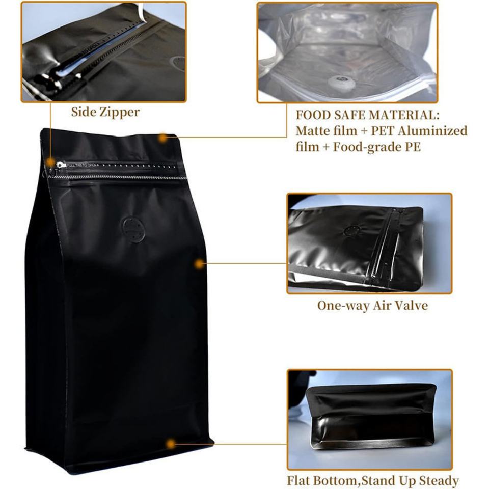 Sacs d'emballage alimentaire personnalisés imprimés pour café et thé, 250g, 500g, 1Kg, en papier mat métallisé, recyclables, avec valve et fermeture éclair