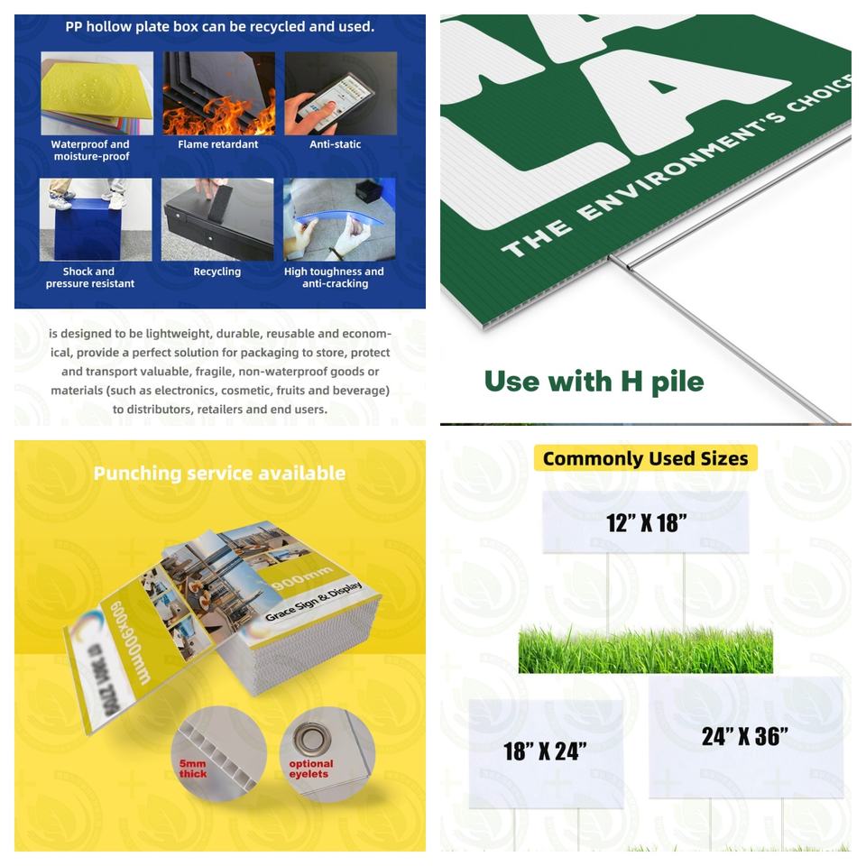 Panneau de cour en plastique ondulé imprimé sur mesure simple face pour la promotion des affaires de la campagne politique immobilière