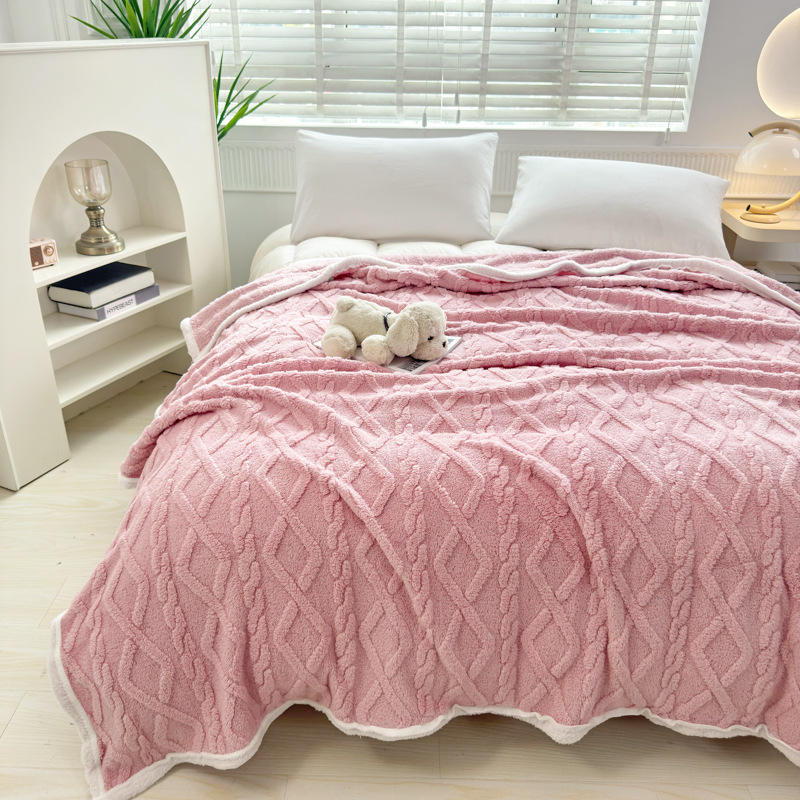 Custom Printed Cozy Woven Jacquard Luxury Bedding Soft Plush Fleece Throw Solid Stripe for Bed Sofa Use Winter 100% Polyester