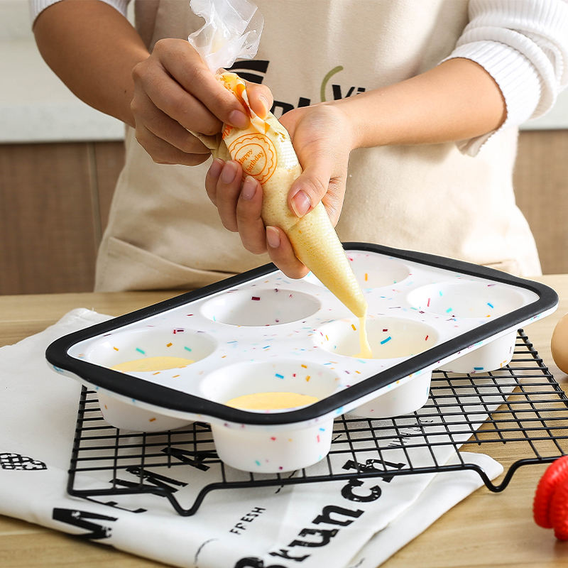 Moule à gâteau manuel imprimé personnalisé avec revêtement pour cupcake Plateau de cuisson pour tarte Moule à muffins en silicone avec cadre en métal