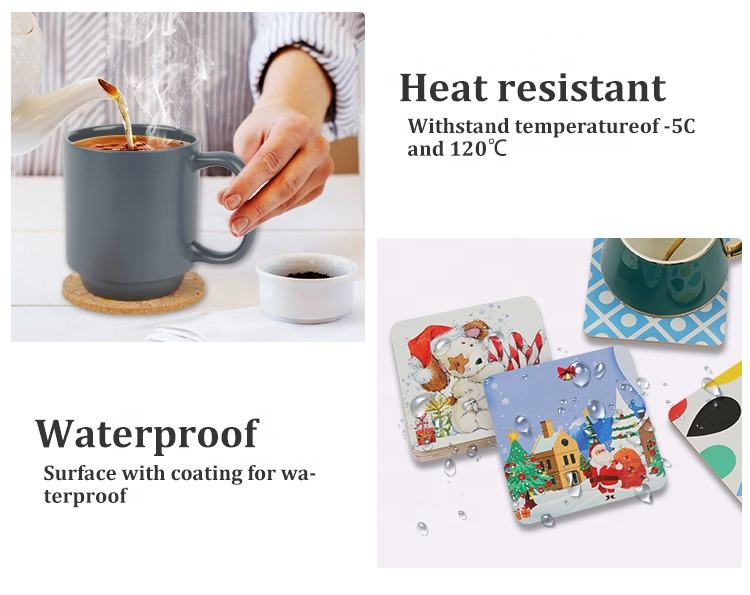 Dessous de verre mignons imprimés personnalisés Sous-verres ronds carrés de 4 pouces en liège vierge antidérapants