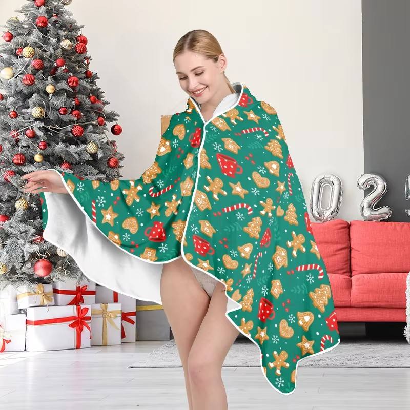 Couverture de Noël imprimée sur mesure Couverture portable pour la maison Canapé Cape en flanelle Couverture surdimensionnée portable à capuche
