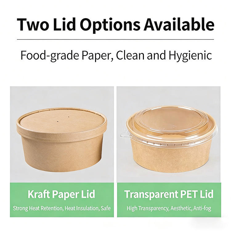 Bol en papier kraft rond à double paroi imprimé sur mesure avec couvercle, résistant à l'eau et compatible micro-ondes, pour salades et plats à emporter