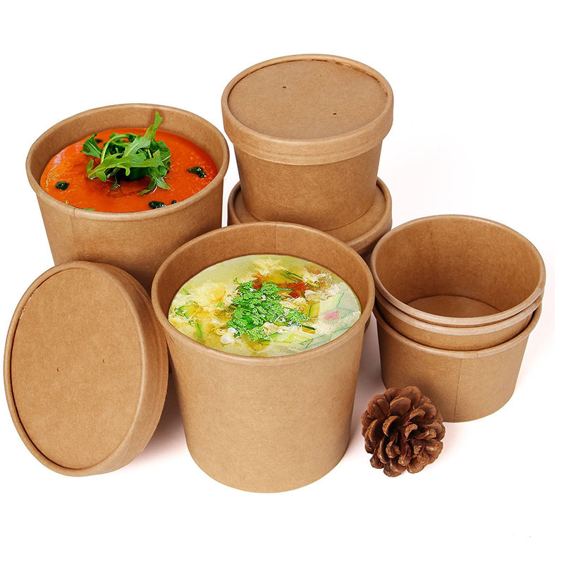 Bol à salade et gobelet à soupe en papier kraft jetables imprimés sur mesure avec couvercle, conteneur d'emballage pour la restauration rapide, contenants à emporter pour soupe