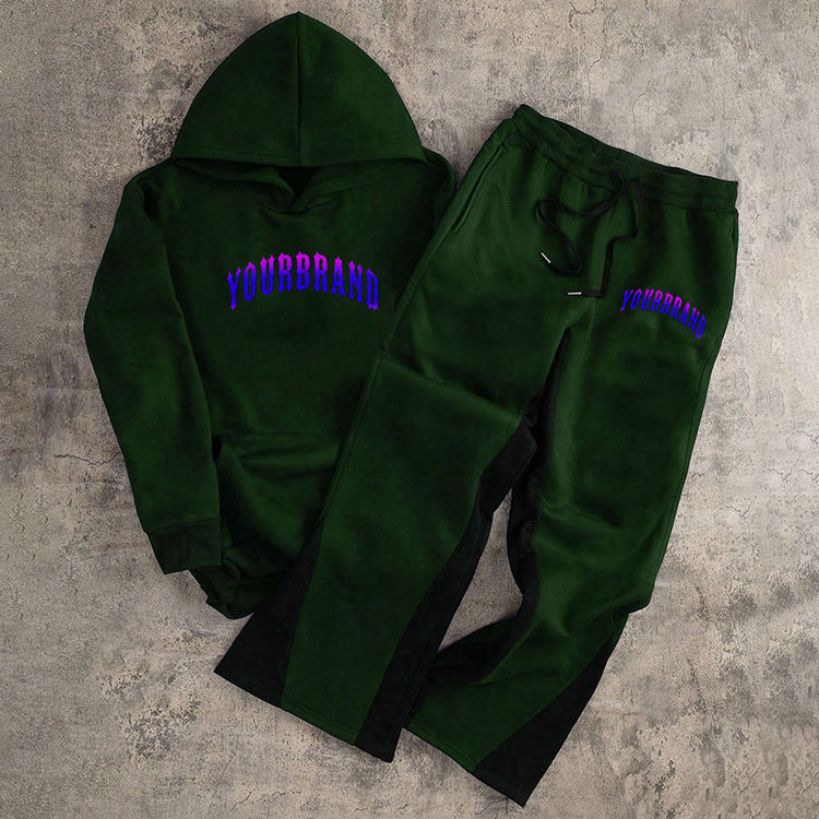 Ensemble survêtement pour homme avec sweat-shirt à capuche et pantalon de survêtement imprimé personnalisé, broderie usée, délavage à l'acide, 100% coton
