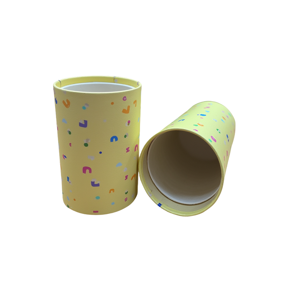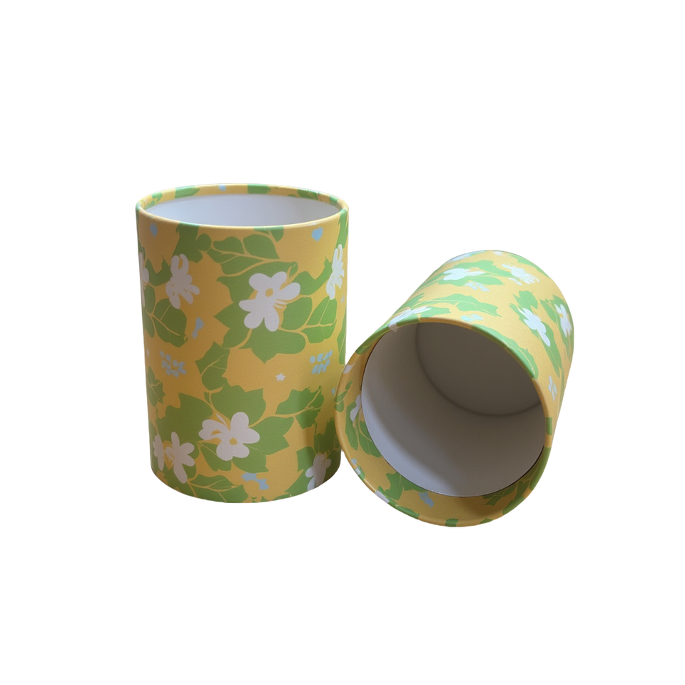 Boîte en papier cylindrique écologique personnalisée avec impression, matériaux recyclés, pelliculage mat, doublure en éponge de carton biodégradable