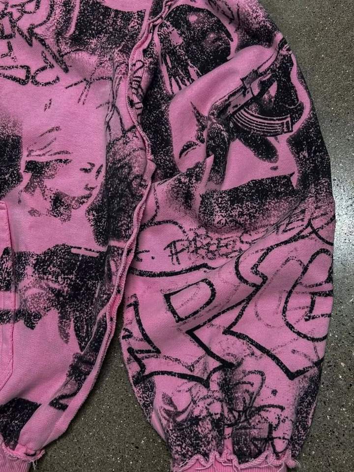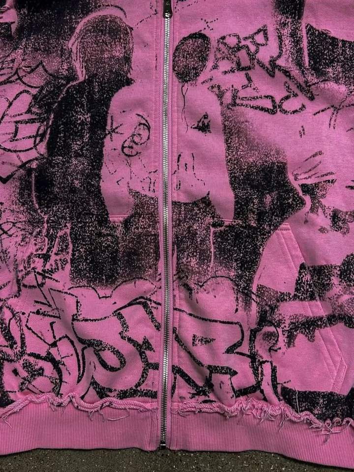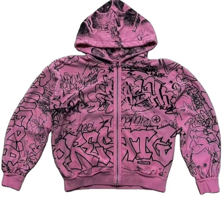 Sweat à capuche d'hiver surdimensionné en molleton bouclette 100 % coton, imprimé sur mesure, avec fermeture éclair et manches chauve-souris