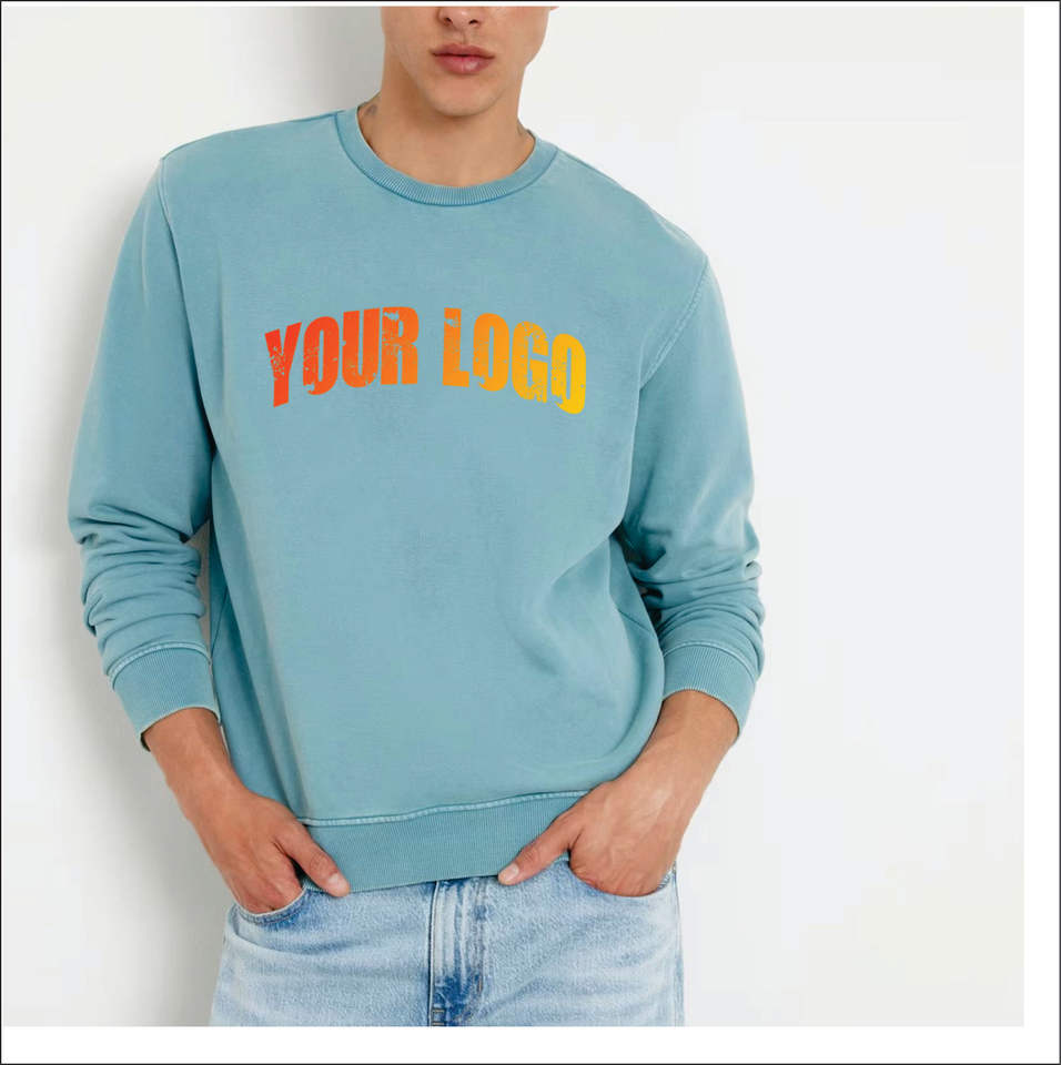 Sweat-shirt en molleton de coton lourd à col rond avec logo brodé personnalisé, style hip-hop, OEM ODM, 100% coton, sweat-shirt pour homme