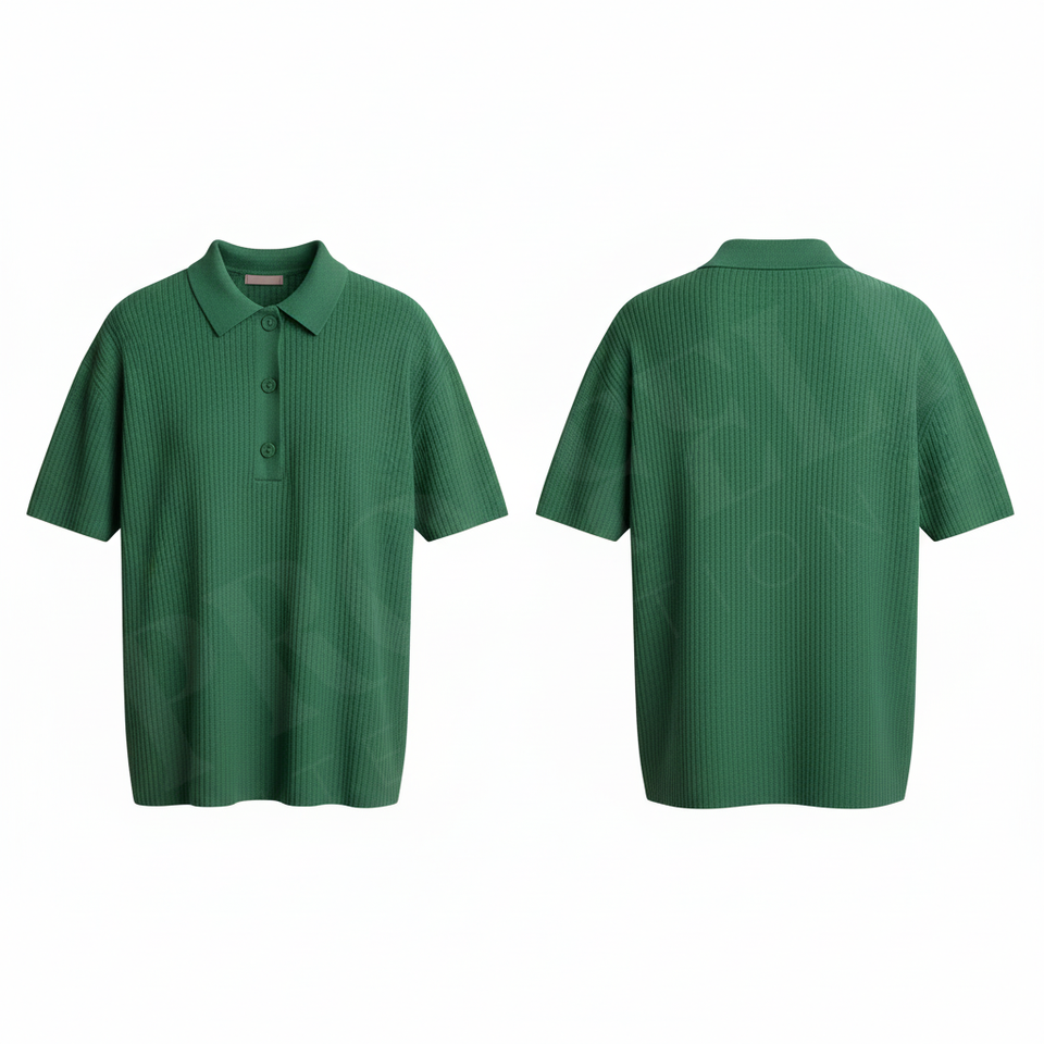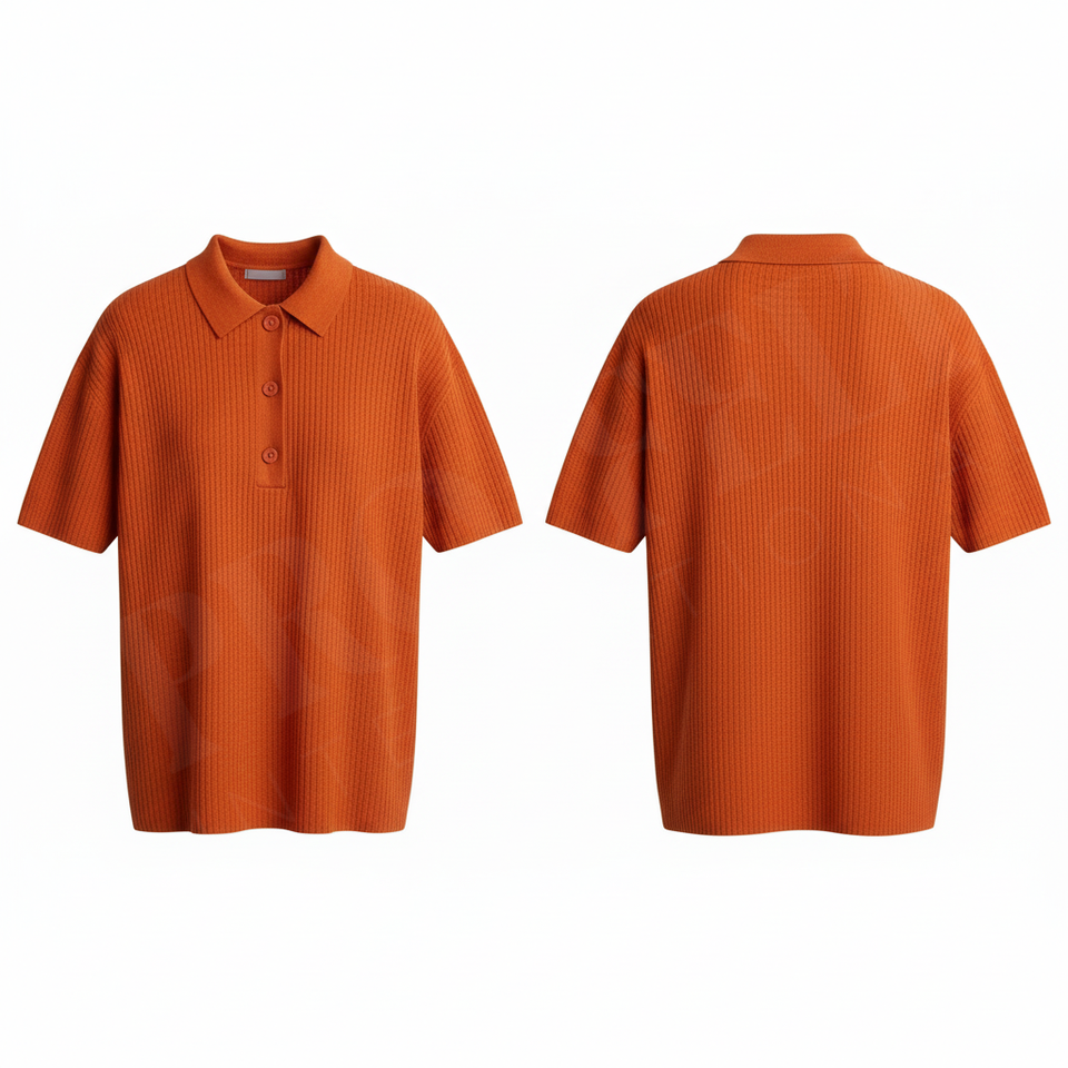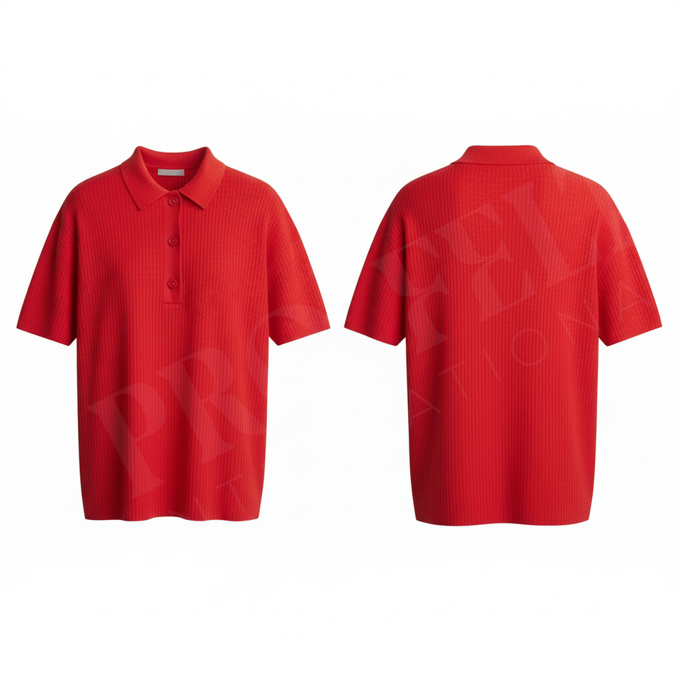 Polo rouge uni à manches courtes en coton côtelé, coupe décontractée, respirant, avec logo brodé personnalisé, idéal pour l'été
