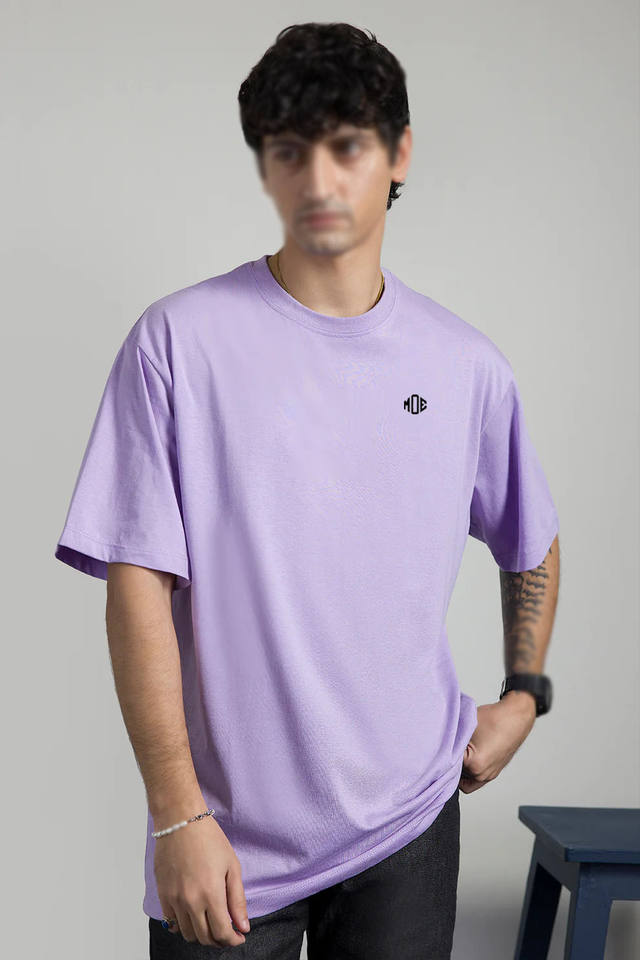 T-shirt à manches courtes en coton lavande pour homme, col rond, coupe ample, épaules tombantes, imprimé personnalisé, broderie, minimaliste, décontracté, quotidien