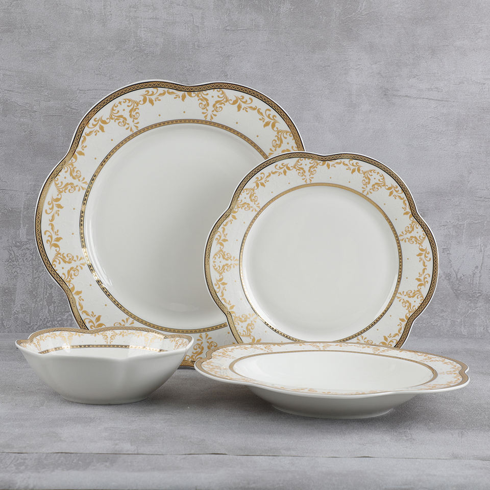 Ensemble de petit-déjeuner numérique rond en céramique de luxe motif or de l'Inde de 21 pièces pour 6 personnes, ensemble de petit-déjeuner