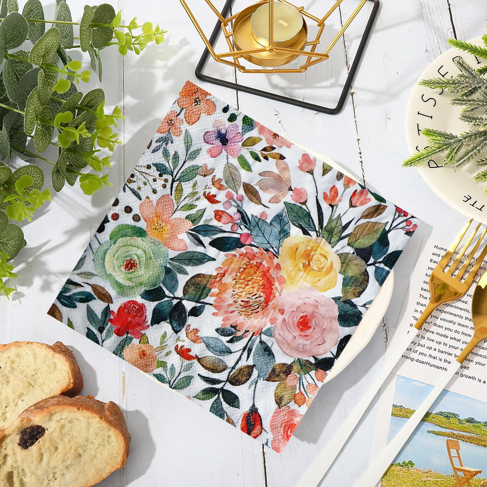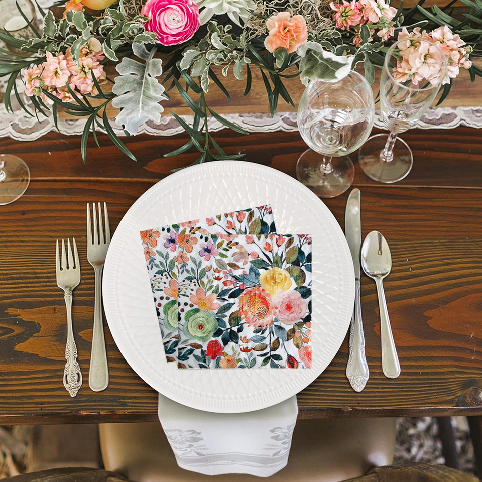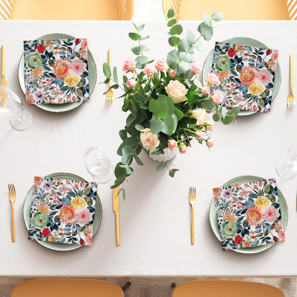 Imprimé personnalisé motif de fleurs thème fête d'anniversaire décoratif coloré découpage carré serviettes de table avec logo utilisation au restaurant