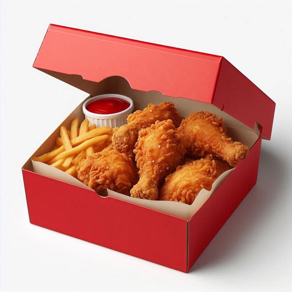 Boîte de poulet frit imprimée personnalisée emballage à emporter en papier ondulé pour restauration rapide