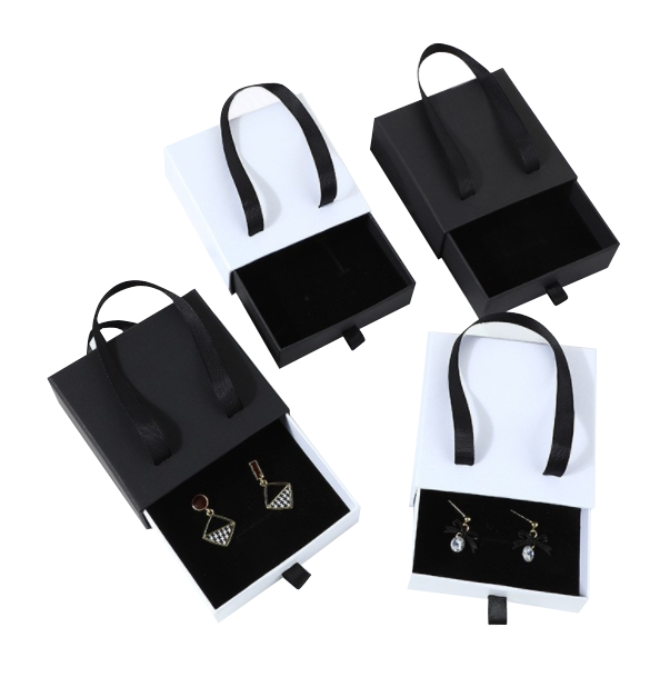 Boîte à bijoux en carton à imprimé personnalisé Boîte à bijoux bracelet à tiroir coulissant avec poignée en ruban Emballage de bijoux bijoux