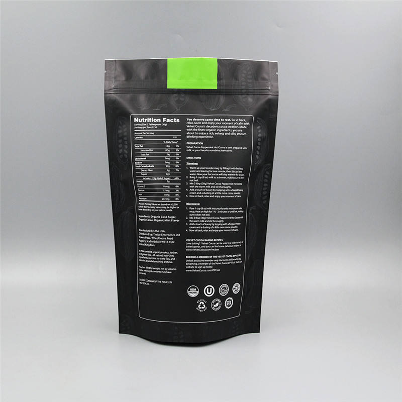 Custom Printed Gravure Printing Plastic Mylar Foil Bags Cocoa Powder Snack Pouch Energy Chocolate Packaging Bag Stand up Pouch