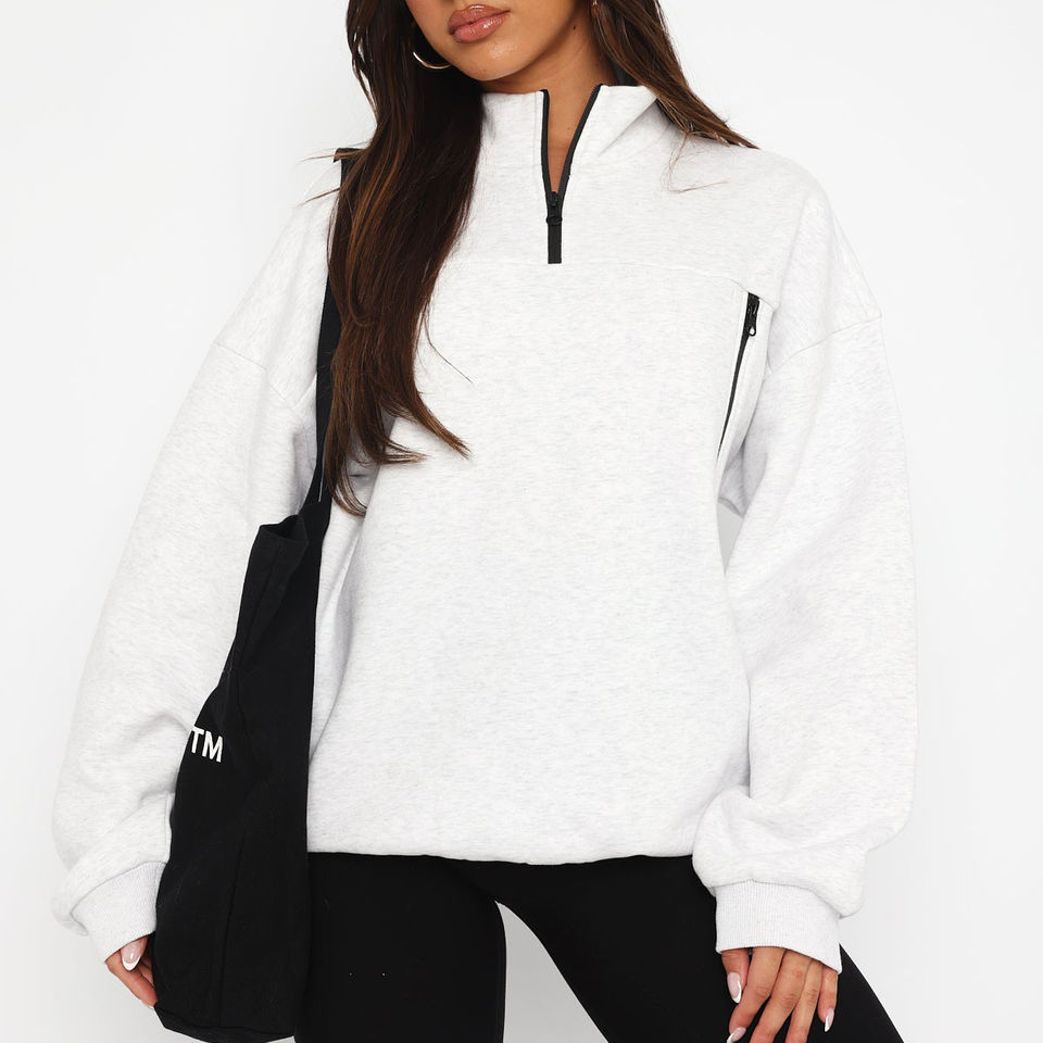 Personnalisé imprimé demi fermeture éclair goutte épaule ample pull-over lettre imprimé Vintage à manches longues grande taille femmes sweat-shirt