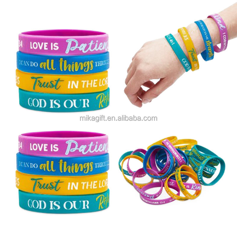 Cadeau de LOGO imprimé personnalisé bracelets d'église versets bibliques religieux chrétien arabe bracelets en silicone en relief