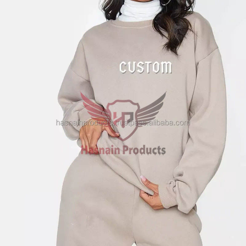 Maillot d'hiver imprimé personnalisé pour femmes grande taille Sweat à capuche classique de haute qualité avec épaules tombantes 100% coton Logo OEM 2 pièces