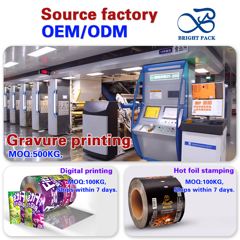 Film d'emballage en rouleau de qualité alimentaire résistant à l'humidité, en matériau PET AL Mylar laminé imprimé sur mesure, feuille d'aluminium métallisée pour le lait