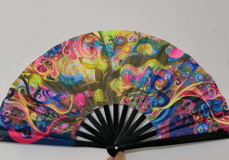 Éventail pliant en nylon Kongfu imprimé sur mesure, grand format, pour soirées et clubs, produit artisanal en bambou