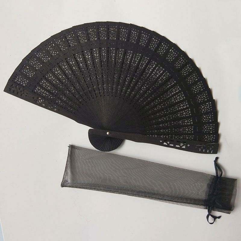 Custom Printed Logo Bamboo Hand Fan Portable Folding Carved White Flower Paint Home Decoration Promotional Gift Set 101pcs Opp