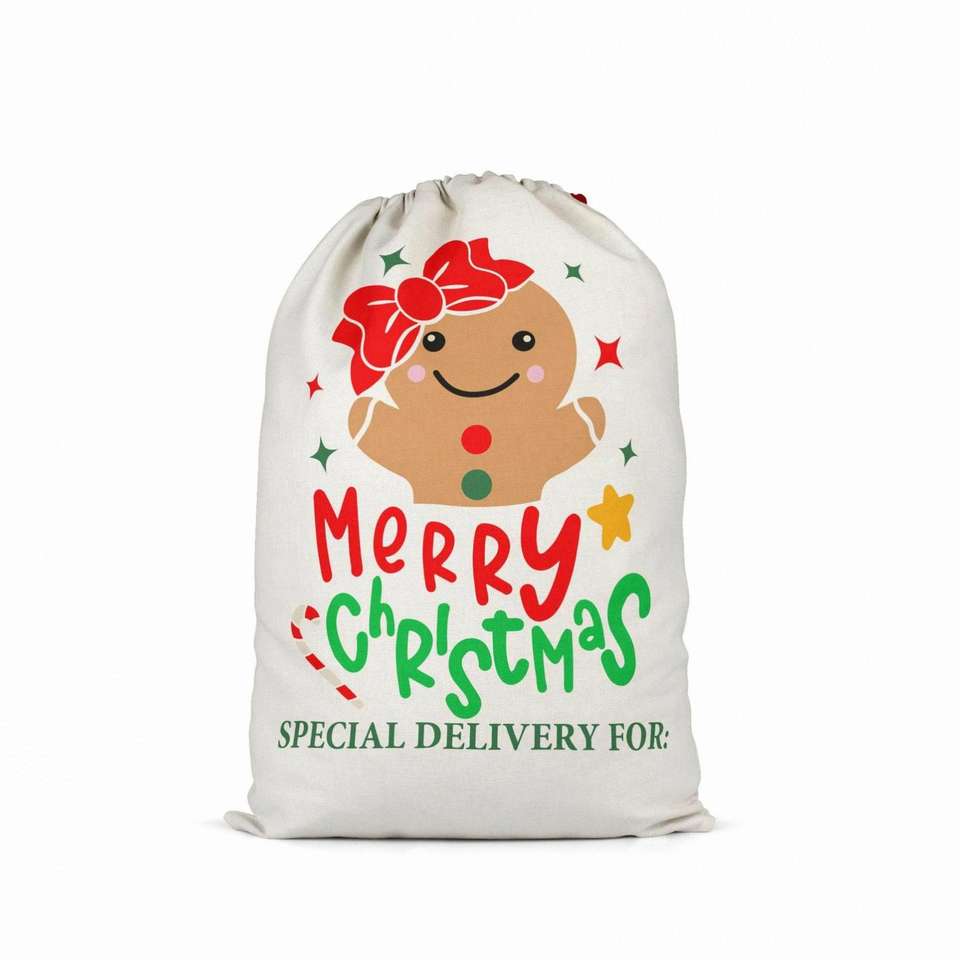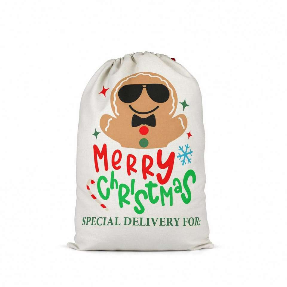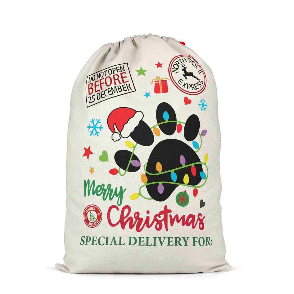 Sac cadeau de Noël personnalisé avec logo imprimé, sac de Père Noël, sac en lin à cordon avec motif de dessin animé mignon