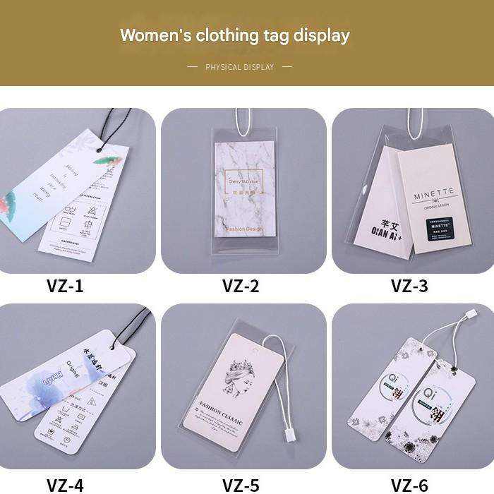Custom Printed Logo Clear PVC Hangtags Garment Clothes Tags, Luxury Swing Tags Set String Pin Design Paper Clothing Hang Tags