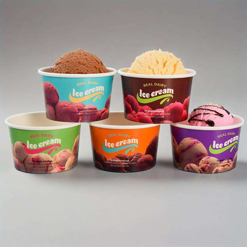 Tasse en papier jetable de qualité alimentaire avec logo imprimé personnalisé bol à dessert pour soupe yaourt glacé crème glacée avec couvercles