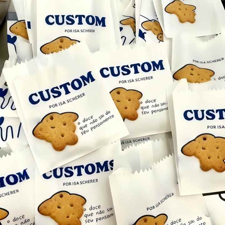 Custom Printed Logo Flat Glassine Wax Food Cookie Sandwich Paper Bag Oil Proof for Pizza Milk Sushi Jelly Digital Printing