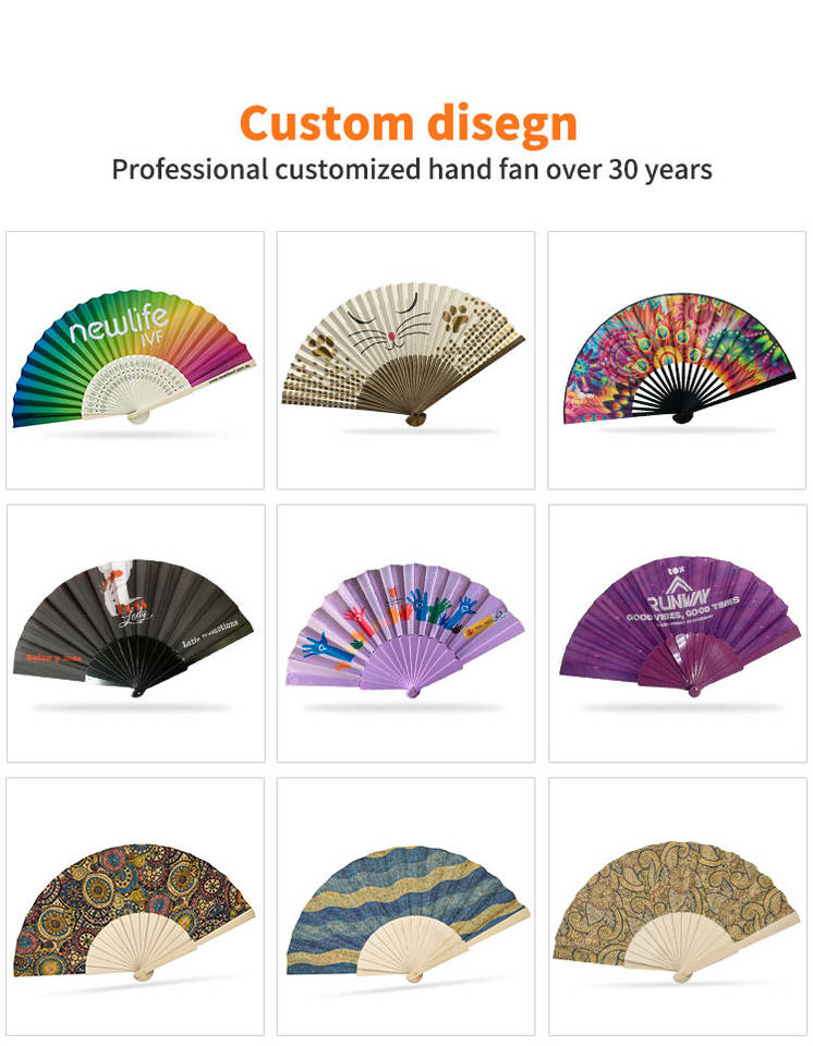 Éventail Pliant en Bambou Personnalisé avec Logo Imprimé, Éventail à Main en Tissu pour Mariage